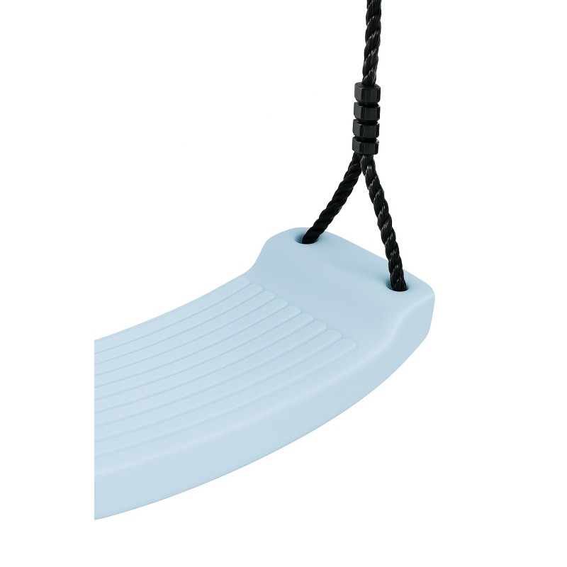 Siège PVC bleu avec cordes noires de 37 cm de long.