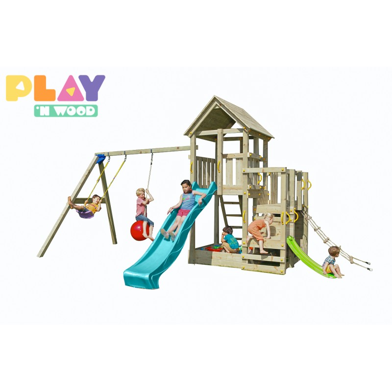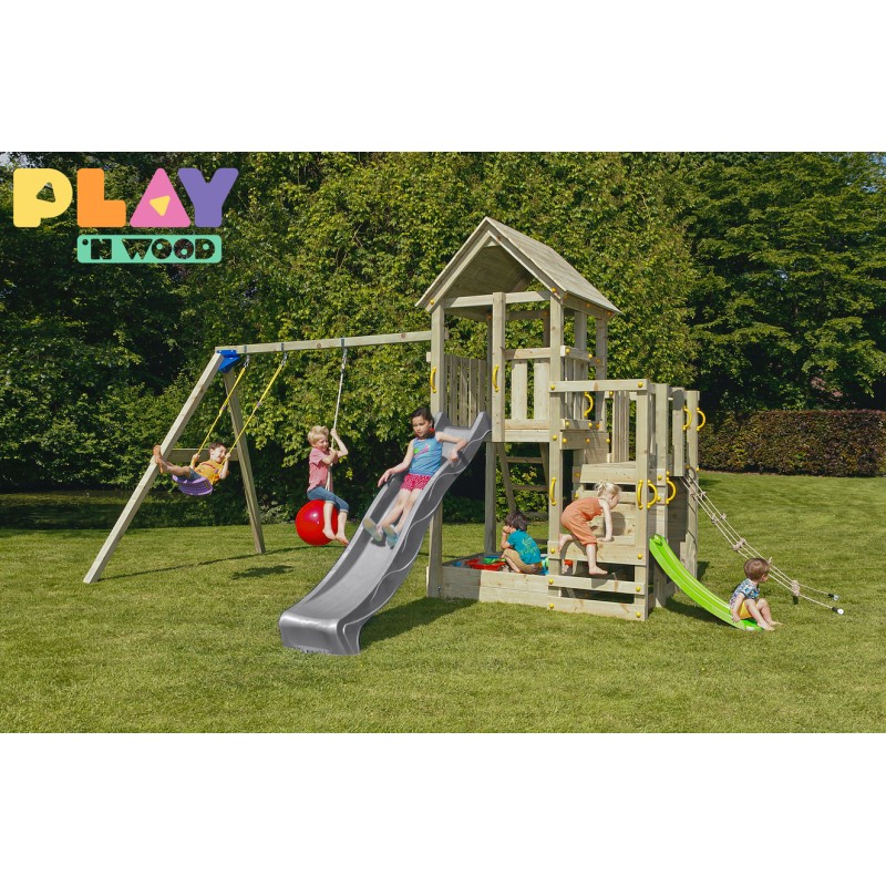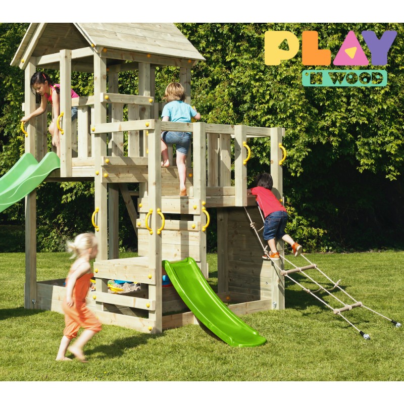 Ce modèle est fourni avec le toboggan TOBA d'1m19 en vert lime , ainsi qu'avec le filet à grimper.