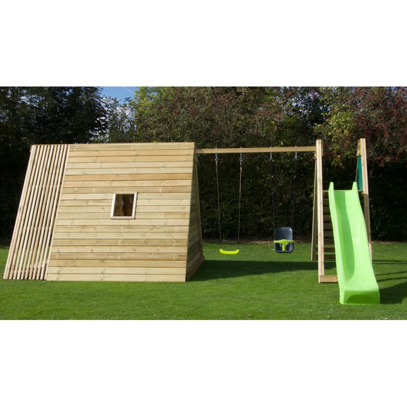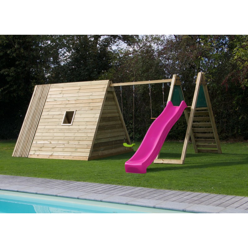 Nous conseillons vivement de commander les pièces d'ancrage métalliques en option ,afin de stabiliser au mieux votre aire de jeux.