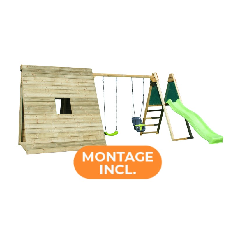 TOTEM portique et toboggan montée entièrement dans votre jardin :