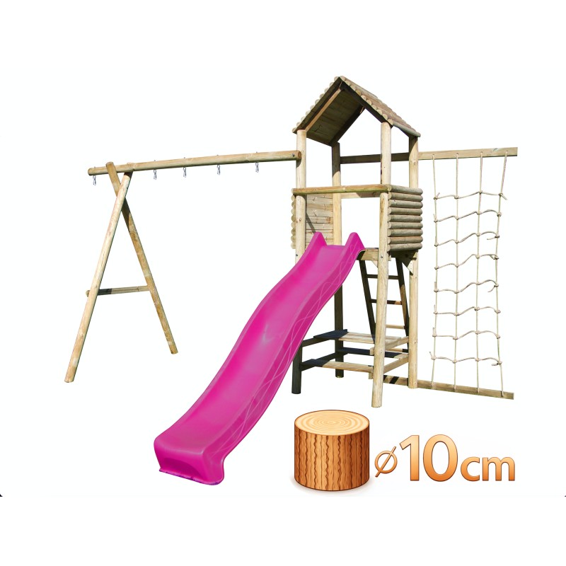 Comprend toboggan Tsuri de 2m90 , un kit filet ,une table pic-nic , une plateforme 150 cm et un portique 3 agrès.