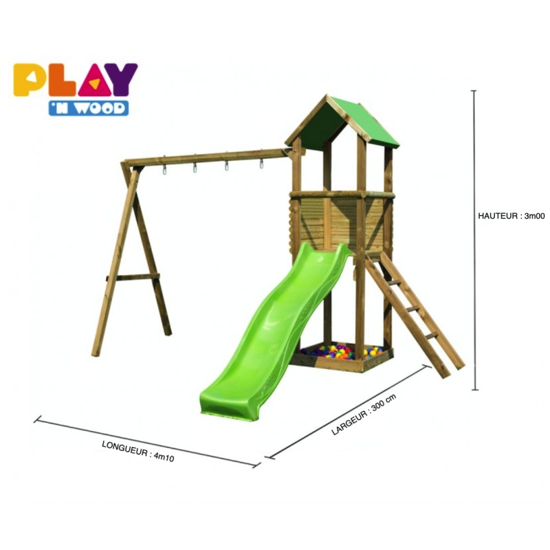 La tour est en bois rabotés et traités en classe IV, ce qui permet de garantir ce jeu pour 10 ans contre la pourriture et les attaques d’insectes.