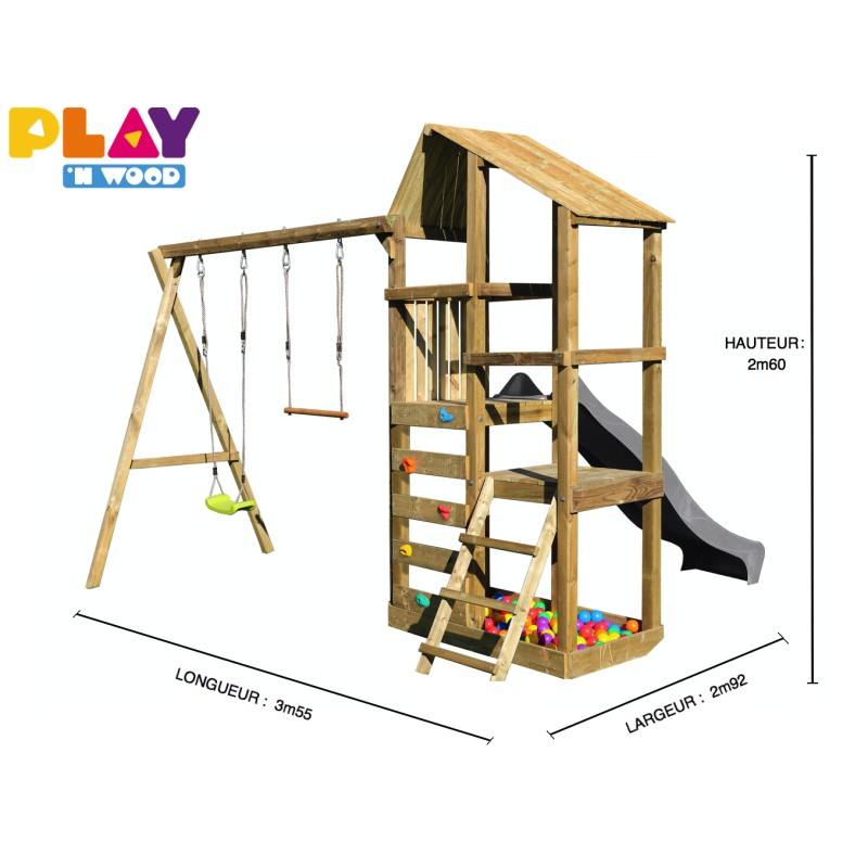 Les boules multicouleurs du bac à sable ne sont pas comprises mais sont disponibles en supplément sur notre site : CLIQUEZ ICI