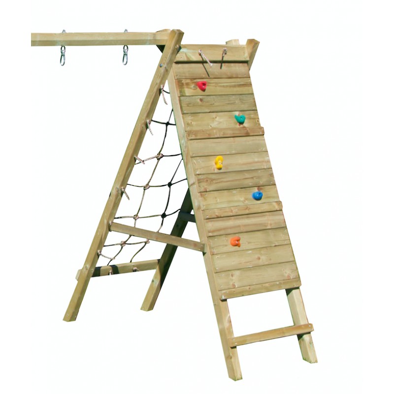 We raden u aan om de metalen verankeringsonderdelen in optie te bestellen zodoende het speeltoestel zo efficiënt mogelijk gestabiliseerd kan worden.