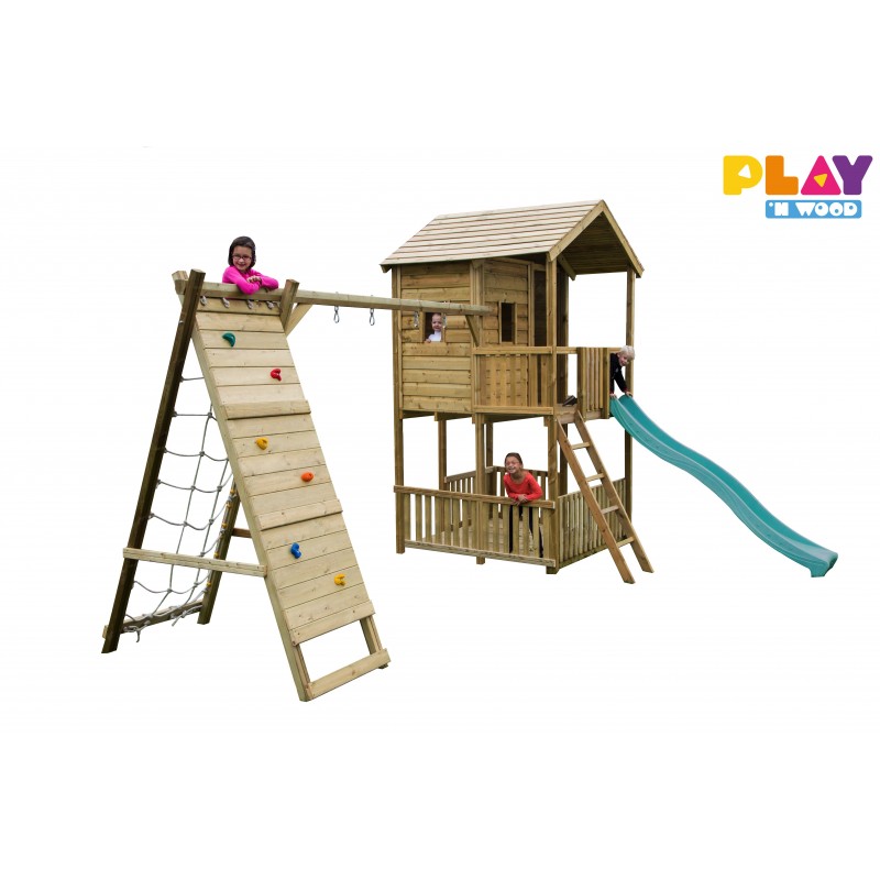 De toren is gemaakt van afgewerkt hout en behandeld in klasse 3 en 4 waardoor het speeltoestel gedurende 10 jaar beschermd is tegen rot en aantasting door insecten.