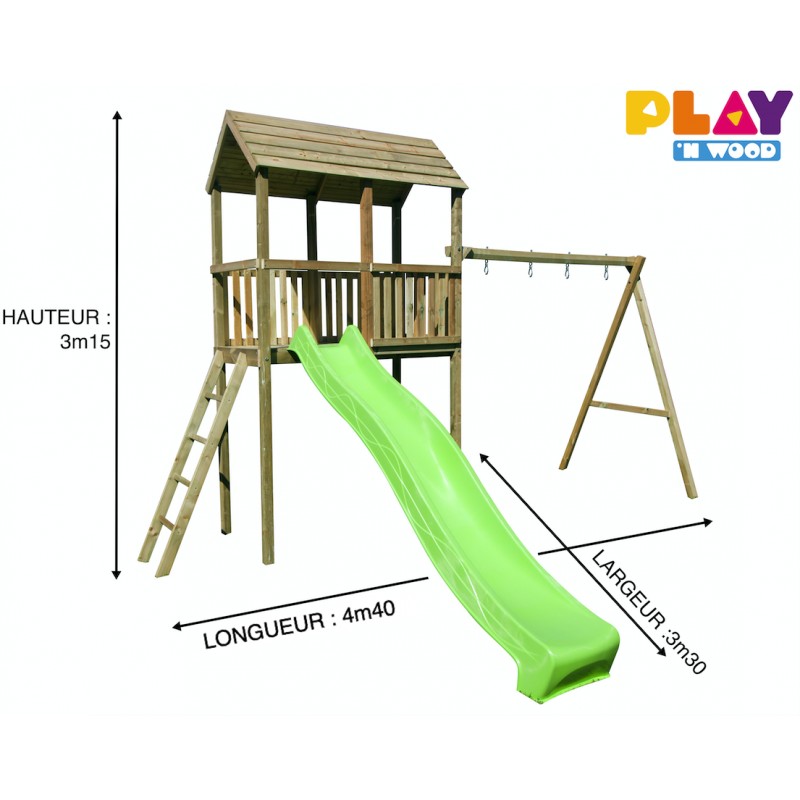 De speeltoren is gemaakt van afgeschaafd hout en behandeling in klasse IV. Dit zorgt ervoor dat het speeltoestel gedurende 10 jaar verzekerd is tegen rot en aantasting door insecten.