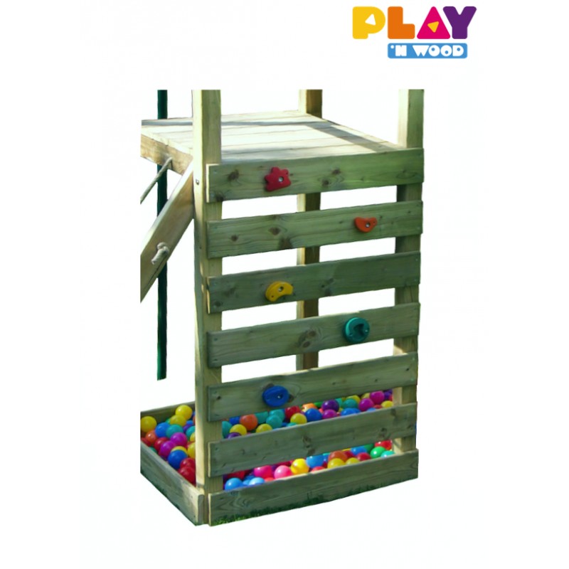 De toren is gemaakt van gladgeschaafd hout en behandeld in klasse IV, wat het speeltoestel gedurende 10 jaar beschermt tegen het rotten en aantasting door insecten.