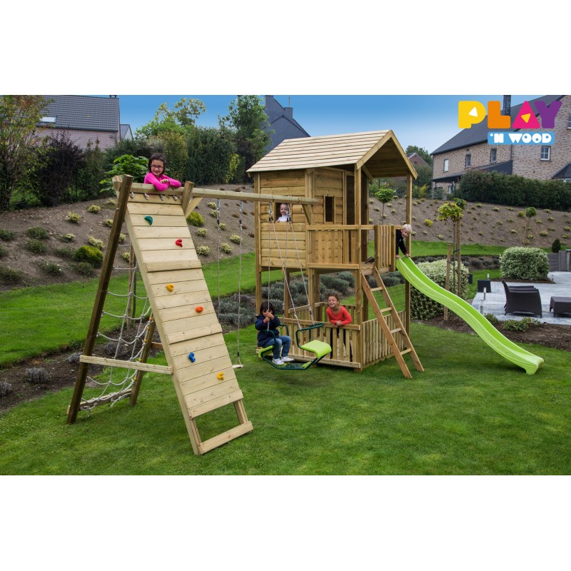 De toren is gemaakt van afgewerkt hout en behandeld in klasse 3 en 4 waardoor het speeltoestel gedurende 10 jaar beschermd is tegen rot en aantasting door insecten.