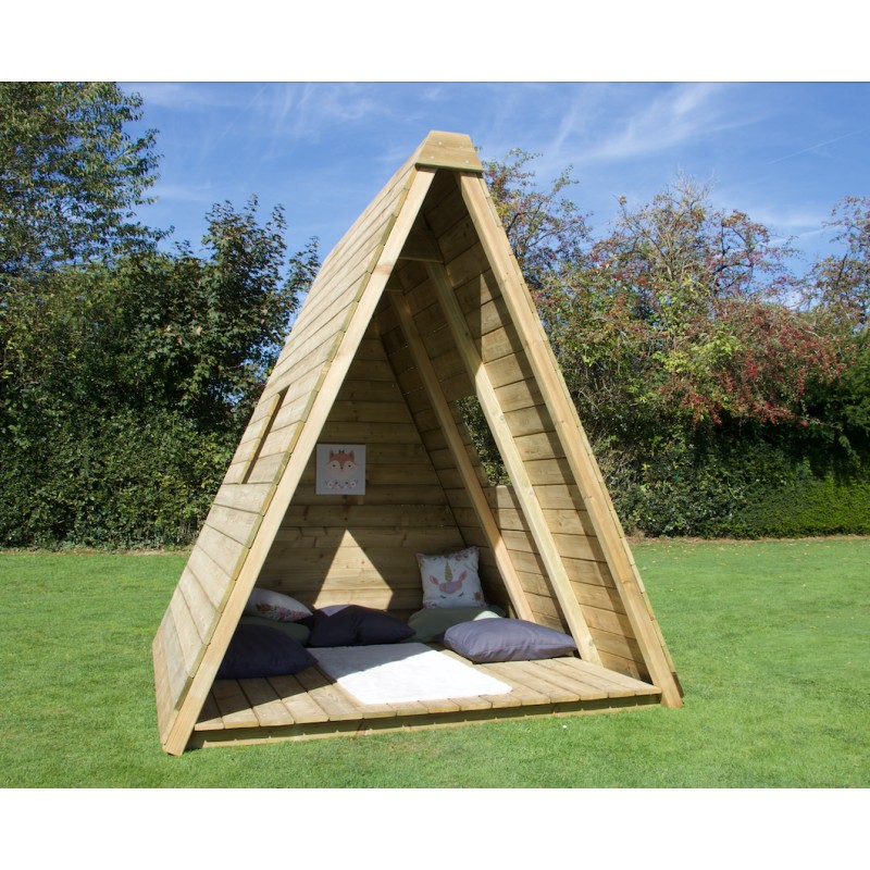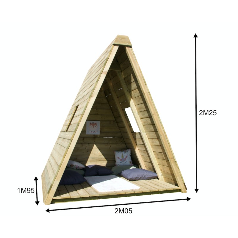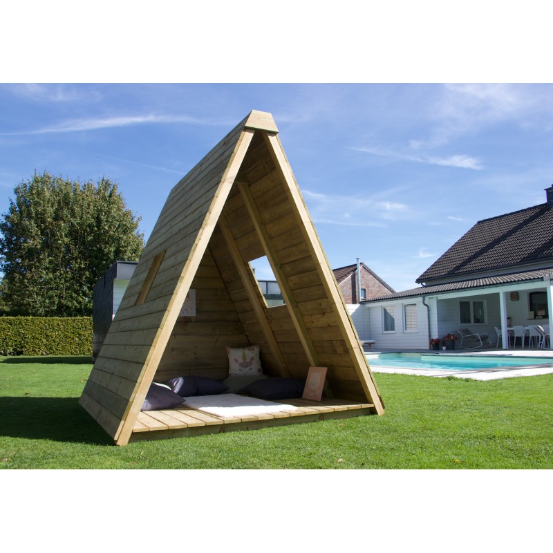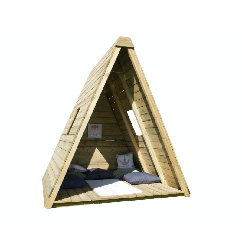 Het is een volwaardige speelwoning op de grond, met een krachtig en natuurlijk design, ontworpen om kinderen een plek te bieden om te spelen, te ontspannen en hun fantasie de vrije loop te laten, terwijl ze perfect in de tuin past.