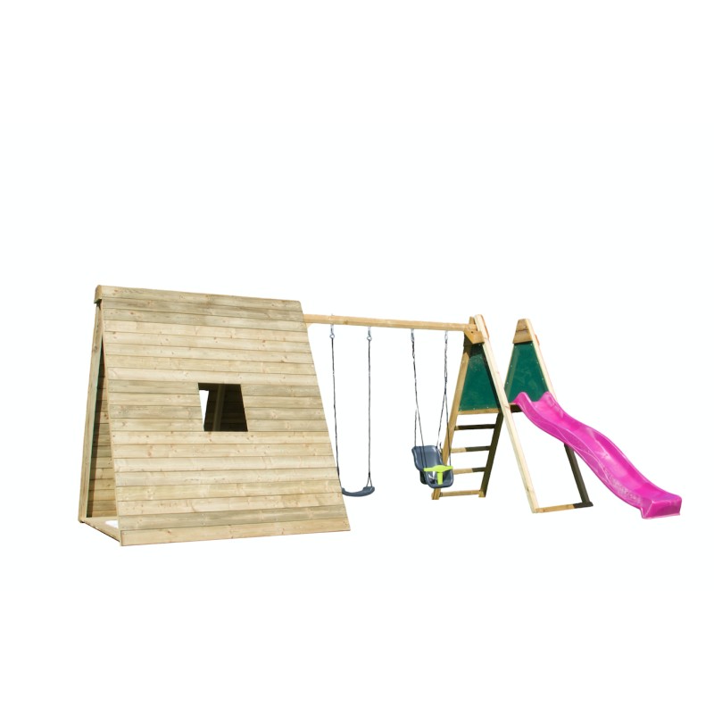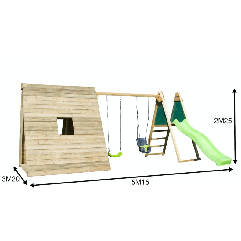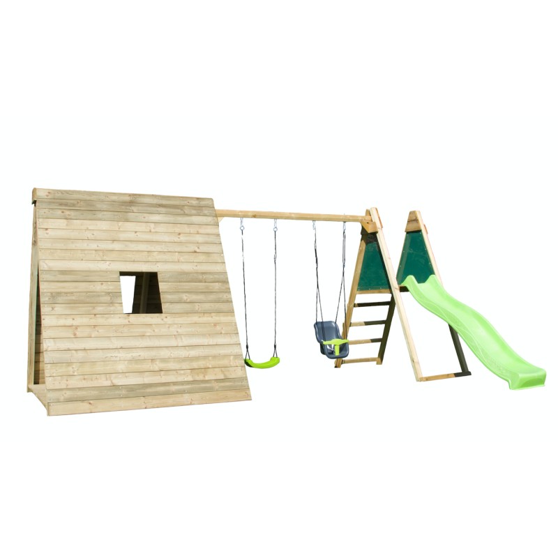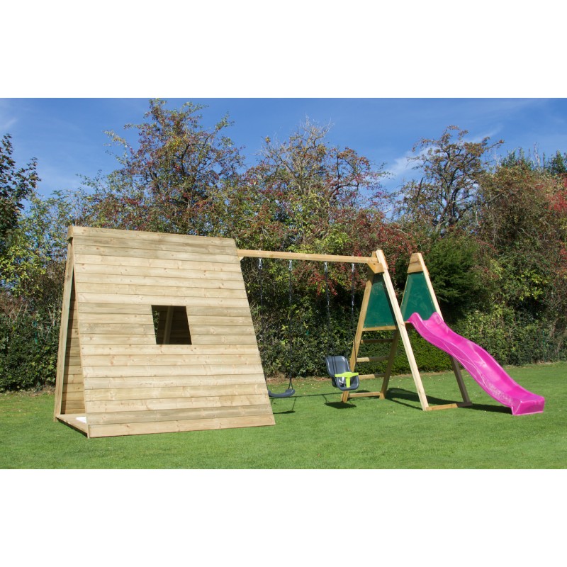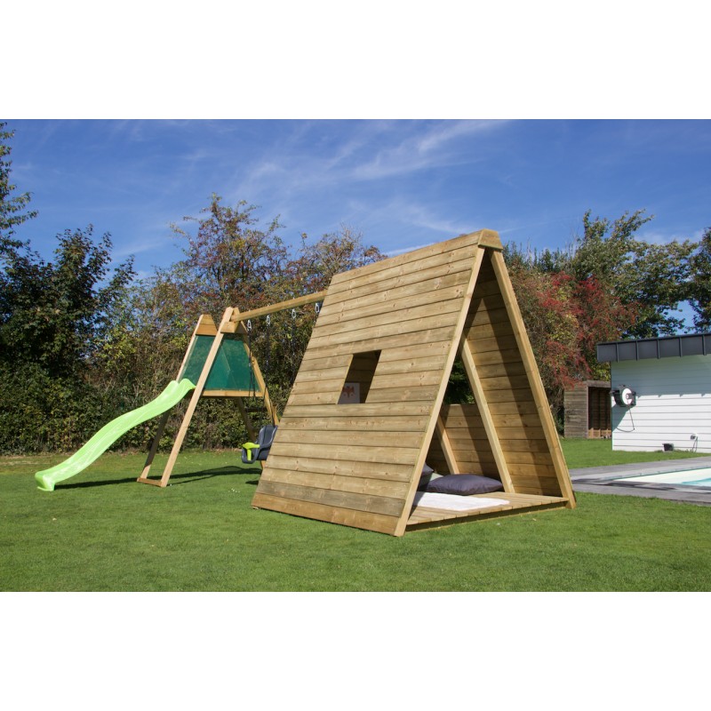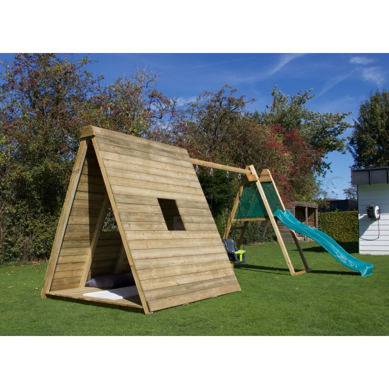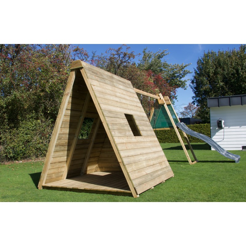 Het is een volwaardige speelwoning op de grond, met een krachtig en natuurlijk design, ontworpen om kinderen een plek te bieden om te spelen, te ontspannen en hun fantasie de vrije loop te laten, terwijl ze perfect in de tuin past.